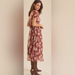 Altar’d State Burgundy & Cream Chiffon Floral Midi Dress by Blue Pepper Size M