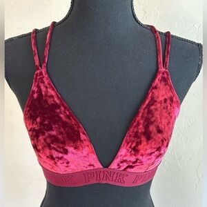 PINK Victoria's Secret Burgundy Red Crushed Velvet Unlined Bralette Sz S