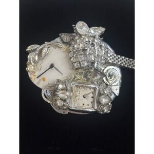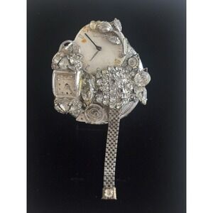Steampunk Brooch Watch Dial Parts Rhinestones One Of A Kind Piece Of Art