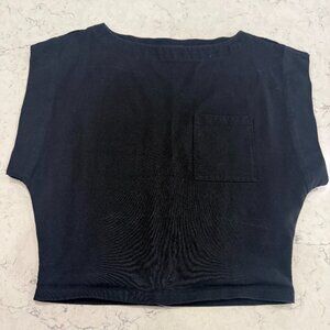 This is a really cool shirt, i also have it in striped.... i was all excited when i bought it last summer then i realized i am too self conscious having my mid drift out (i know, i know, but mid forties it happens to us all!) Its not like a crop but it comes to the natural waist. Never been worn just tried on and tried to be like, I;m cool! i can do this.. no , no i cannot lol. Size XS.