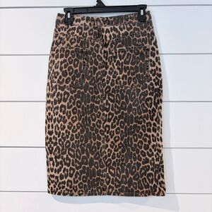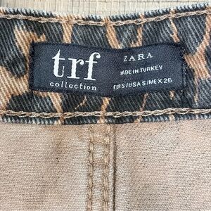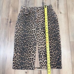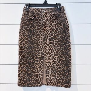 Zara TRF Leopard Print Denim Midi Skirt Y2K Animalcore Mobwife S Front Slit