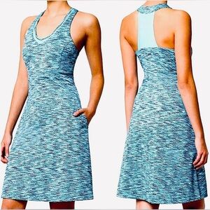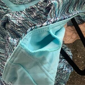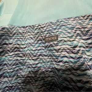 MPG Active Travel Dress Pockets Teal Boho Chevron Print A-Line Mesh Racerback
