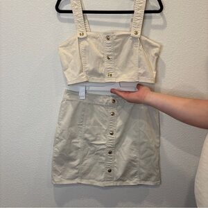 Michael Kors Cream Button Front Crop Top & Mini Skirt Set – Size L