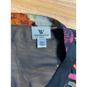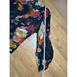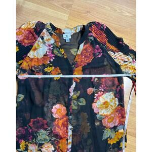 Worthington Black floral sheer long bishop sleeve button up blouse Whimsigoth XL