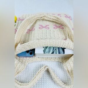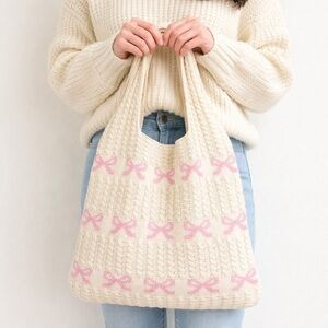 NEW Zenana Cream Pink Bow Knit Tote Bag Coquette Cottagecore Boutique