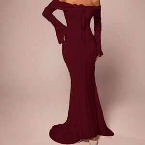 Burgundy Elegant Women's Off-Shoulder Maxi Dress