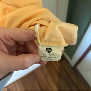 This t-shirt is in excellent like new condition! No rips, tears, stains, or holes. The only “flaw” is that the care tag is cut out, however, the care info can still be found on Madewell’s website. Being that this is a cotton tee it can be machine washed and dried on low.