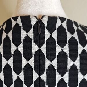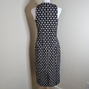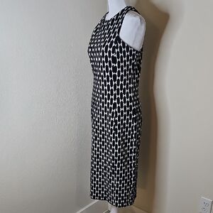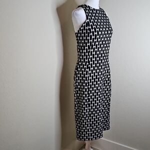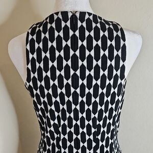 Ann Taylor Black & White Geometric Sleeveless Stretch Midi Dress Sz 6