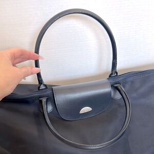 Samsonite navy nylon/ Leather weekender foldable duffle bag