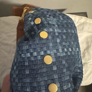 Brand new with tags Hammitt Morgan bag in woven denim with tan leather trim and gold hardware.