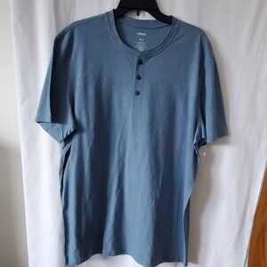 1- Sonoma essential 3 button Henley blue with horizontal pattern