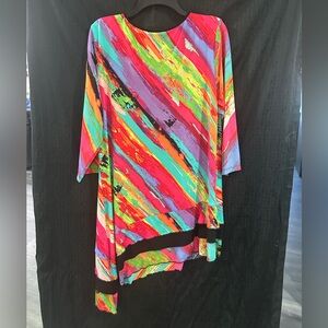 Peter Nygard Multicolor Abstract Stripe Tunic Top 3/4 Sleeve Artistic Blouse XL
