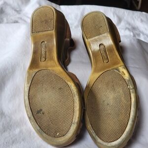 Easy Spirit ESRUCHEL Tan Leather T-Strap Wedge Sandals 8M Perforated Straps