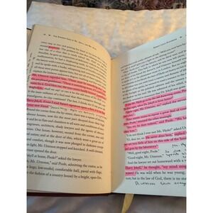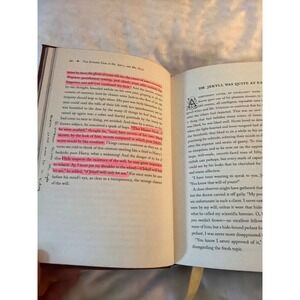Hardcover Classic collection of Robert Louis Stevenson's gothic tales, including the iconic title story along with other notable works. This Barnes & Noble edition features a decorative faux-leather cover in deep burgundy with ornate gold-tone typography and illustrations. The interior includes a built-in yellow ribbon bookmark and clean typography, though several pages contain significant pink highlighter markings and handwritten margin notes from a previous reader. Ideal for a student or a reader who doesn't mind a "well-loved" copy of these Victorian horror and adventure stories. Preowned in good condition. First 15 pages have some highlighting and a few notes written. Other than that, it is excellent. See photos. Photos are part of the condition description