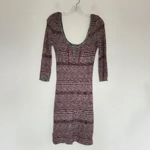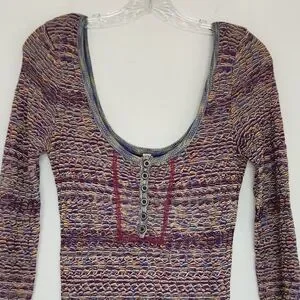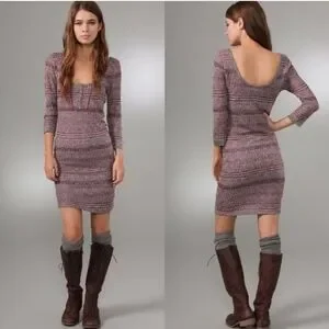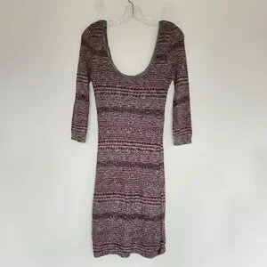 Free People Sunrise Knit Sweater Stretchy Mini Dress Purple Raven Combo Bodycon