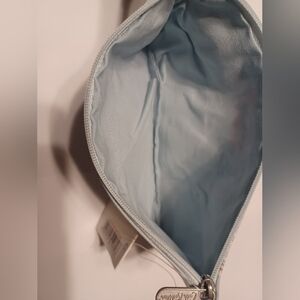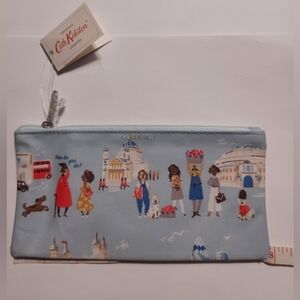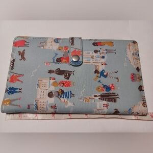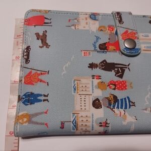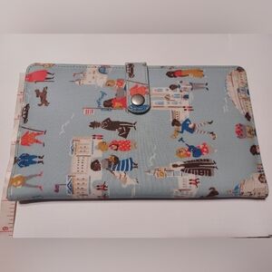 Cath Kidston Travel Wallet with London People. The color is powder blue. It has a currency pouch that comes out of the travel wallet, as you can see in the pictures. It has a place for your passport, a section for your boarding pass, and 3 other campartments. It has a secure snap closure. Please look at pictures for measurements and details. No accidental bids, refunds, or cancellations. Please bid responsibly.
