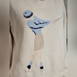 Classic vintage Liz Claiborne Liz Golf sweater featuring a charming golfer graphic that captures timeless country club style.