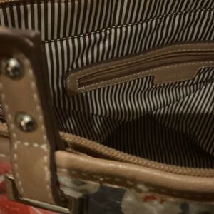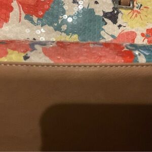 Pop of color and spring colors this vintage handbag is delightful! This “IT GIRL” Nine West bag is a 2000 glam. Measurements are 14” W x 11. Poppy flowers are great for a garden party or daytime party. Interior has two zipper pockets for keys or phone. Excellent condition.