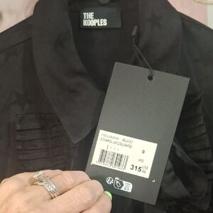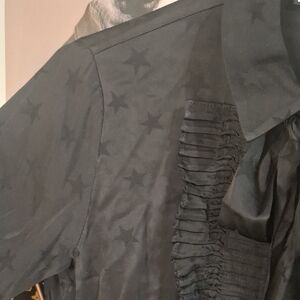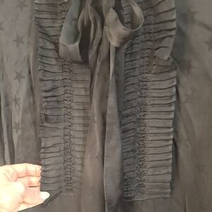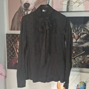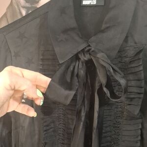 Luxurious black blouse with ruffled front with removable tie neck & Long sleeves and very detailed. Perfect for elegant occasions. Pic dont do it justice! Very gorgeous blouse... * unique statement piece to any wardrobe 👌