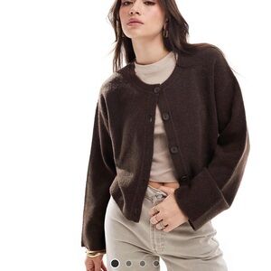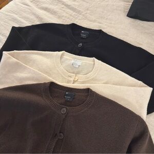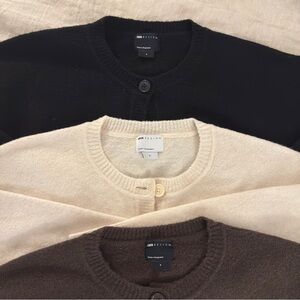 Women's Cardigan Sweater Set - Black, Cream, and Brown