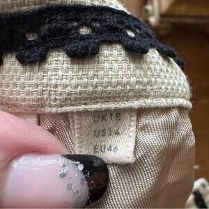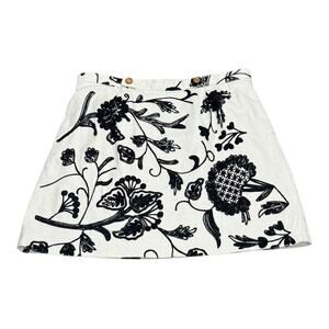 Anthropologie Vanessa Virginia Embroidered Floral Skirt in a size US 14. Has two front pockets. Two decorative buttons at waist. Side concealed zipper and eye and hook. Lined. Measures approximately 17” flat lay waist and 19” in length. 100% cotton. In great condition.