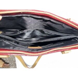 Arcadia Italy Red Patent Leather Tote Bag Monogram Embossed Large Satchel