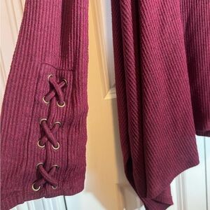 Knox Rose burgundy rib knit tunic top in size XXL with a relaxed flowy fit and lace-up sleeve detail for an easy boho everyday look.