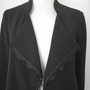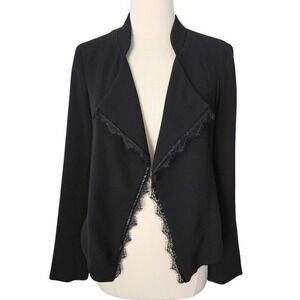 Anthropologie Elevenses Black Lace Trim High-Low Open-Front Cropped Jacket- M