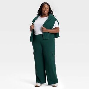 Women's High-Rise French Terry Wide Leg Cargo Pants - Ava & Viv SZ 1X