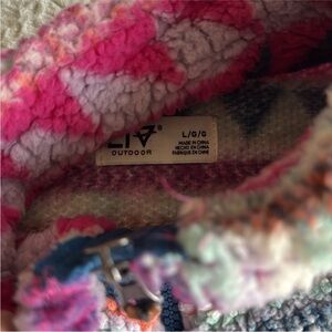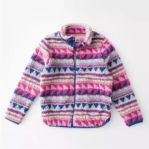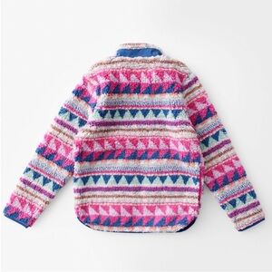 Keep your child cozy and stylish with this colorful fleece jacket featuring a fun geometric design. Perfect for any adventure.