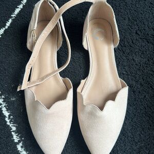 Journee Collection Nude Lana Buckle Pointed Toe Ballet Flats Ankle Strap