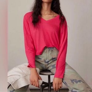 Anthropologie Hot Pink Dina V-Neck Long Sleeve Top Sz M