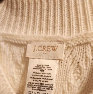 Chic cream poncho sweater by J. Crew. Features a classic cable knit design. Ideal for layering.
