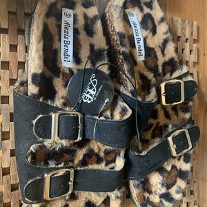 Alexis Bendel Slide Sandals, Leopard Print Faux Fur Slides, Sizes 9,10 NWT