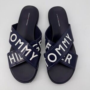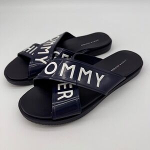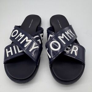 Tommy Hilfiger Women's Navy Blue Logo Slide Sandals 10M Summer Beach Basic