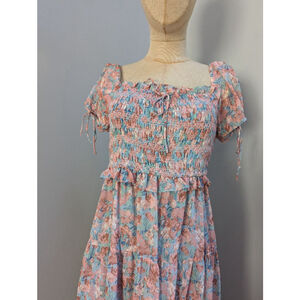En Saison Adelina Midi Floral Pink Blue Midi Dress - Small