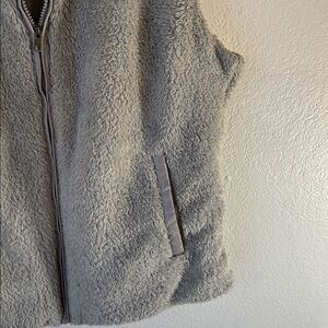 This vest is the fuzzy sherpa style. Grey color. One spot at neck that will come out with some TLC. Otherwise, gently used condition. Size XL. 23” bust, 26” length.