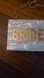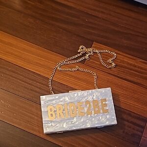 Elegant clutch with 'BRIDE2BE' design. Features a glossy white finish. Gold lettering adds a chic touch. Perfect for special occasions.