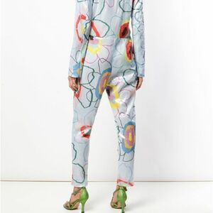 Mira Mikati Jumpsuit Floral Sequin Whimsical Pants Trousers Sz 36