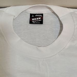 Vintage / New Without Tags Best Fruit of the Loom Bill of Rights Void Where Prohibited By Law / America the Beautiful White Single Stitch Shirt - Tag Size Adult Large. Actual measurements: 42" chest, 28" length. Made in USA. 50/50 Cotton / Polyester.