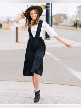 New with Tags - Hayden Los Angeles Tiered Pinafore Dress in Black - Size M