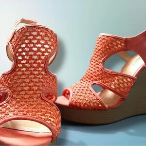 Stylish wedges with a coral woven design. Perfect for any occasion.