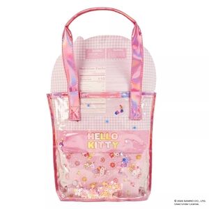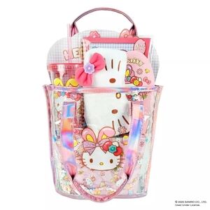 This cute and fun Hello Kitty Confetti Tote Bag Gift Set will be the perfect addition to their little Hello Kitty World! It is filled with fun accessories such as a small notebook to keep those ideas flowing, a pencil bag to keep them organized, a cold cup and clear tote bag that they can take anywhere to show off their love for Hello Kitty. Not to forget the candies to sweeten their day.