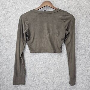 Long Sleeve Crop Top Womens Small Olive Green Stretch Y2K Grunge Baddie JnK USA