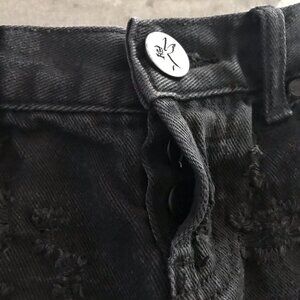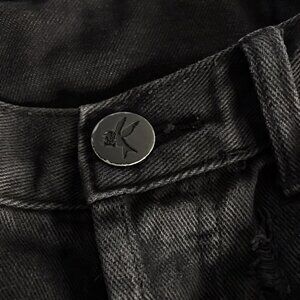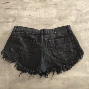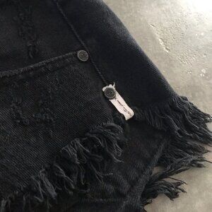 One Teaspoon Bonitas Shorts 26 Black Cut off Denim Button Fly Destroyed Festival
