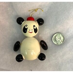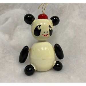 VTG 80's Kurt S. ADLER Wooden Panda Bear Christmas ORNAMENT Movable Arms Japan