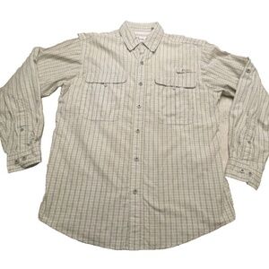 WORLD WIDE SPORTSMAN Mens Long Sleeve Fishing Shirt Plaid Vented Tan/Green M