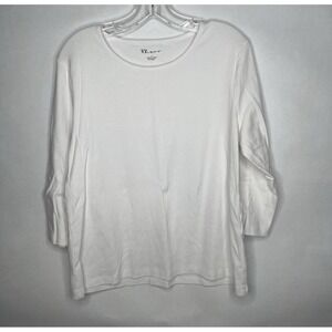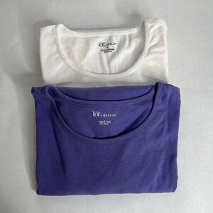 The Tog Shop 3/4 Sleeve T-shirt Lot includes two solid color tees in purple and white, made from 100% cotton material. These classic fit t-shirts are designed for women in size Large with a 3/4 sleeve length. The regular size tees are machine washable, featuring a basic style and brand by The Tog Shop. Perfect for casual wear, this lot of t-shirts offers comfort and style for everyday outfits.