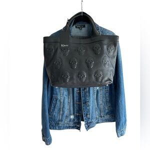 IO Pelle Italy Black Leather Skulls Tote Bag Large
