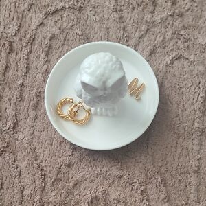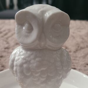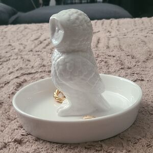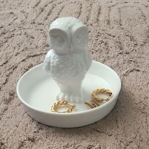 White Ceramic Owl Jewelry Dish Ring Holder Trinket Tray
